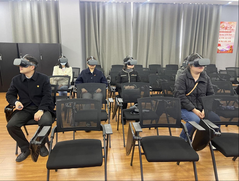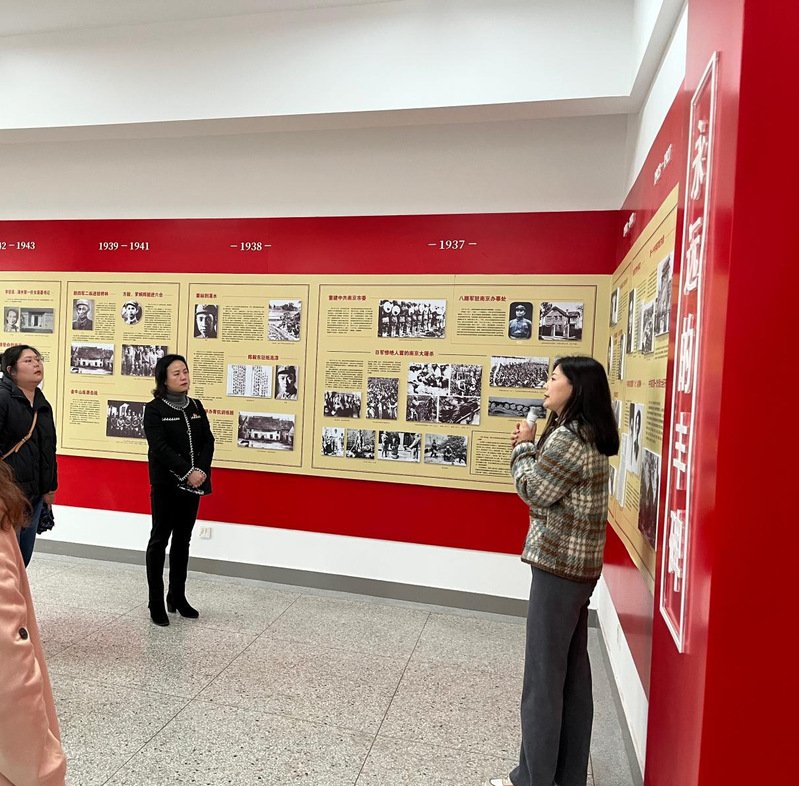 王娜娜副院长带领唐云清书记一行参观了我校思政课校内实践基地。思政教师姜慧、王倩倩、冷雅琳为南京高等职业技术学校老师们讲解并展示了南京地方党史展厅、VR思政教育实训室、法治教育实训室、国防教育展厅、新时代实训长廊等实践基地的现场教学。