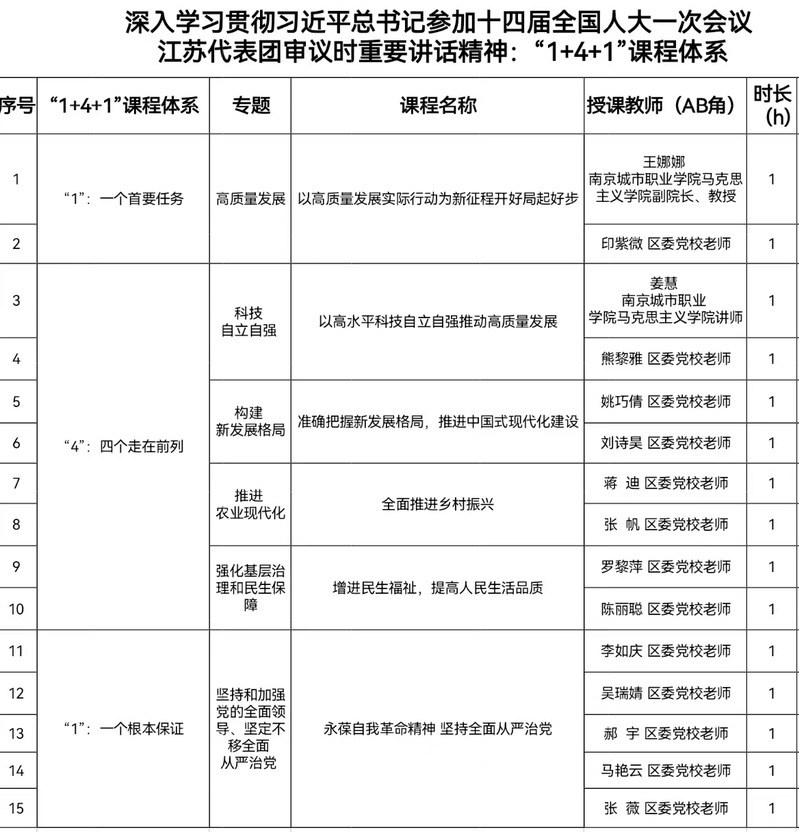 近期,在溧水区委宣传部指导下,双方共同打造《深入学习贯彻习近平总书记参加十四届全国人大一次会议江苏代表团审议时重要讲话精神》课程,构建“1+4+1”课程体系,进一步深化习近平新时代中国特色社会主义思想研究,把学习教育成果转化为服务地方、回馈社会的实际行动。我校yl9193永利集团王娜娜、姜慧老师两位教师加入教学团队,与溧水区委党校教师一起,共同打造高质量课程。