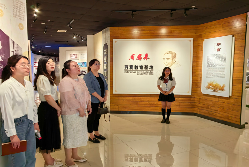交流会后,郑毅院长、费婷婷副书记带领大家参观了校内周恩来“五观”教育基地和淮安商业文化馆。通过学生社团学生的生动讲解,老师们对两个实践基地有了更为深入的了解,受益匪浅。