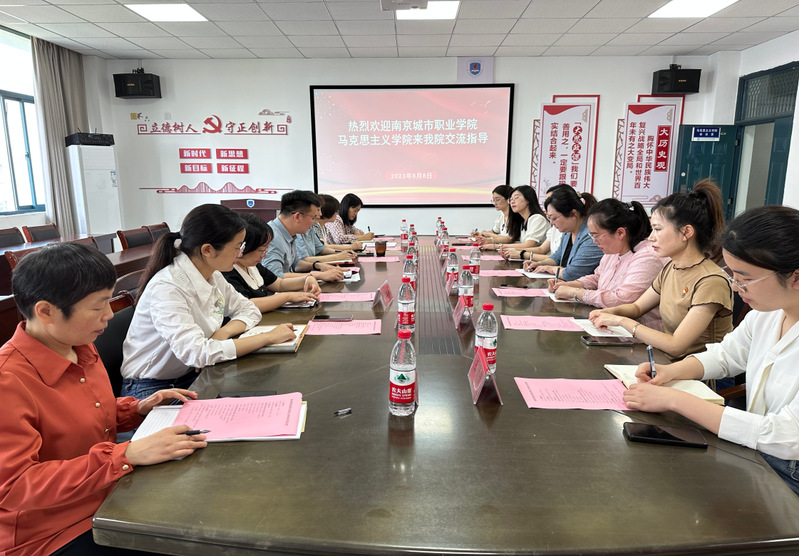 王娜娜副院长围绕我校思政课实践教学、校内实践基地建设、师资状况、特色亮点、教科研成果等方面做了详细介绍。随后双方围绕思政课教学改革与实践教学情况,思政课教师职称评定、教学科研情况和江苏省职业院校教学能力比赛准备工作进行了深入交流。