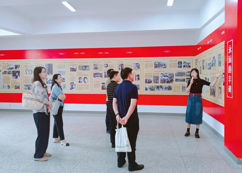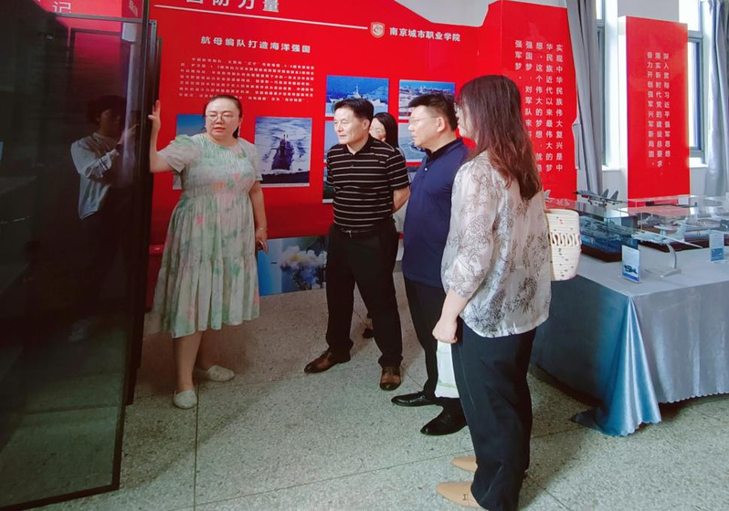 王娜娜副院长带领张威院长一行参观了我校思政课校内实践基地。张蓉老师为江苏海事职业技术学院的老师们讲解了南京地方党史展厅,刘晨老师讲解了国防教育展厅。老师们还参观了我校的VR思政教育实训室、法治教育实训室、新时代实训长廊等实践基地。