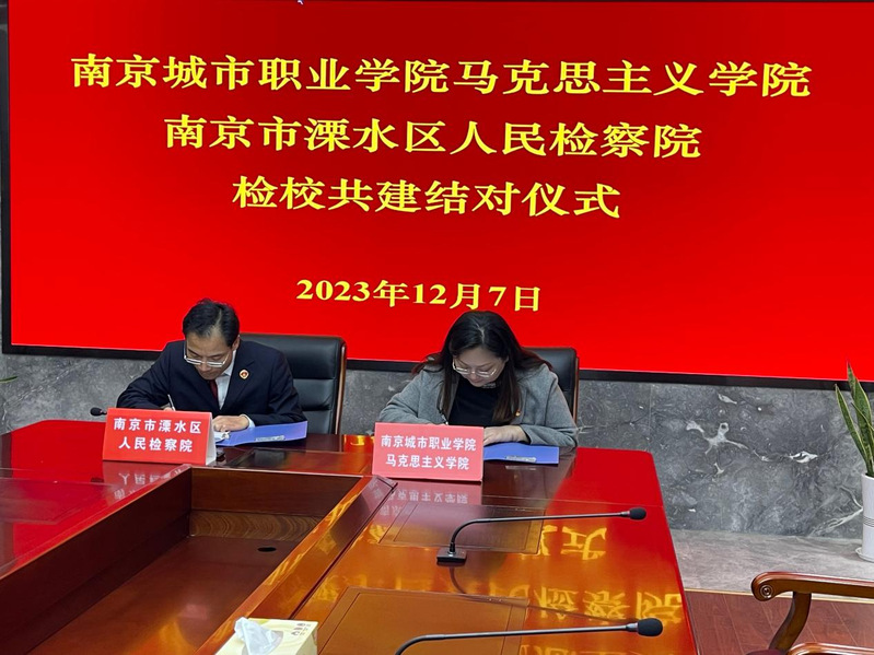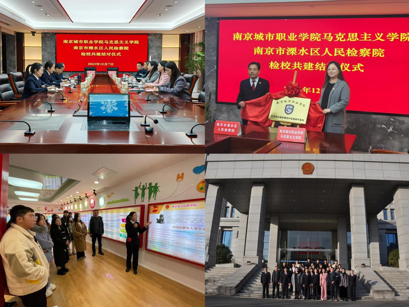 随后,溧水区检察院党组副书记、副检察长杨中青和王娜娜副院长代表检校双方正式签订了合作共建协议;为我校思政课校外实践教学基地揭牌。