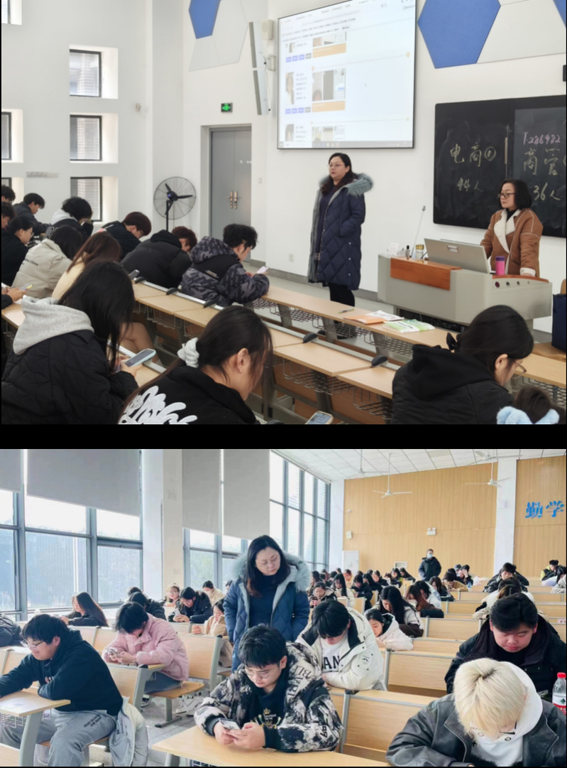 考试期间,副院长王娜娜对考务安排、教师监考、考场秩序、考场环境等情况进行了全面细致的检查和指导,并对本次期末考试工作给予了充分的肯定。监考教师按时到岗,认真履行职责,严格执行考场纪律。超星学习通平台技术人员参与了保障工作,实时通过平台检测考生动态,并及时解决考试中遇到的突发问题。各考场气氛良好,秩序井然,考生自觉遵守考场纪律,考试态度端正。在全院教师的共同努力下,整个考试工作顺利完成。