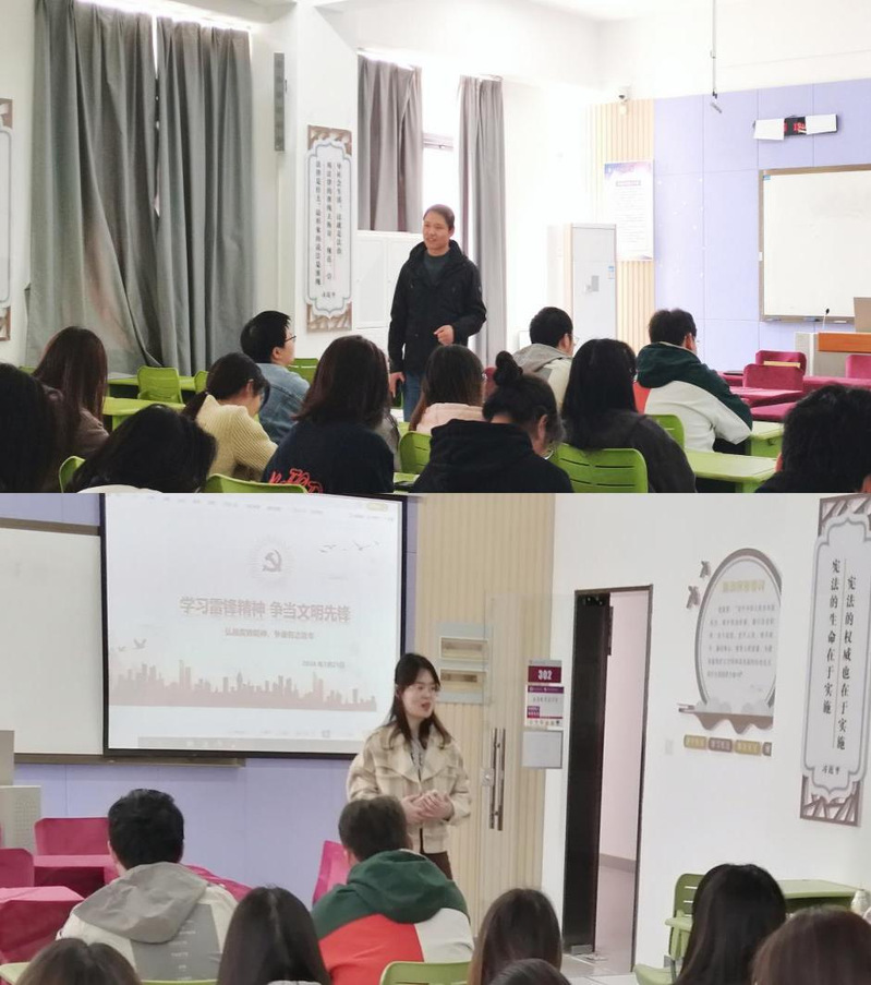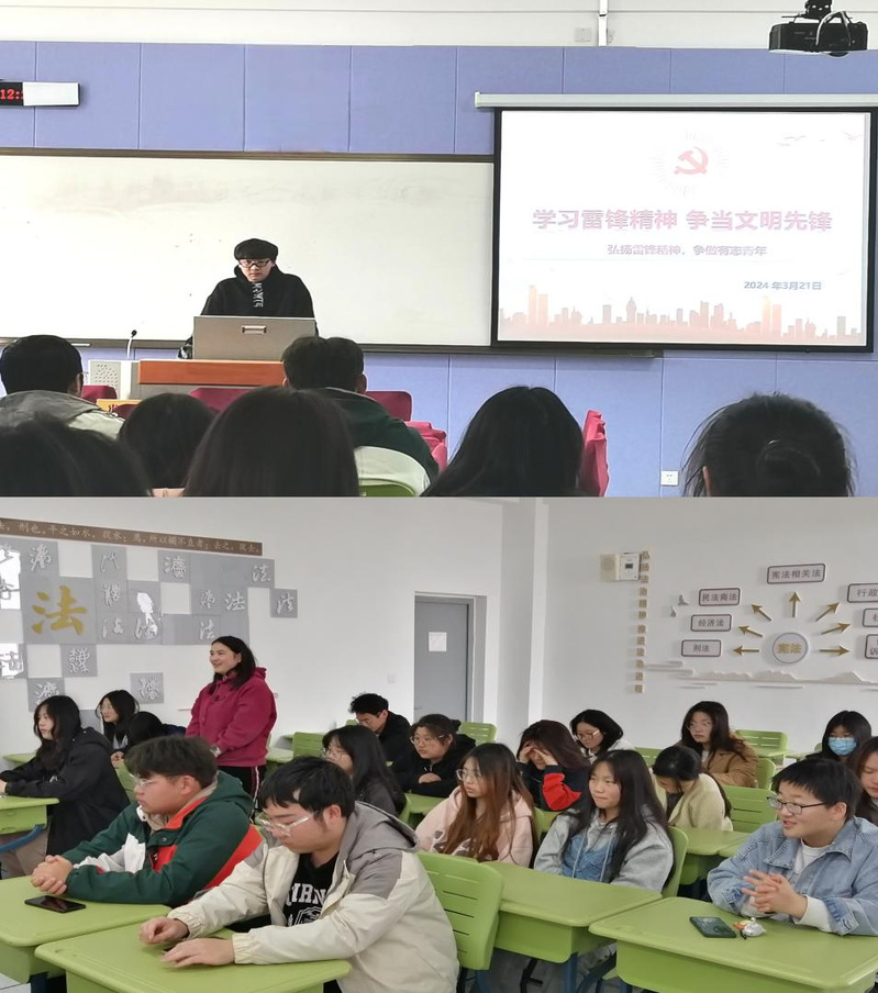 3月21日中午,新青年法宣社在敏行楼302法治实训室开展一场主题为“学雷锋精神,扬中华之风”的学习活动。社团全体学生、指导老师董波、孙洁星参加此次活动。