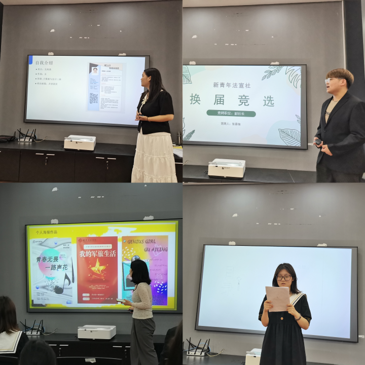 会议开始,夏广焕对新青年法宣社过去一年的工作情况进行了总结汇报,梳理了社团取得的各项成绩,并对社团今后的发展提出了一些建议。随后,由参与竞选的同学依次从自我介绍、竞选意向和个人荣誉等方面进行竞选演讲,每位同学的精彩发言都充满了对社团工作的热爱和对未来的憧憬,展现出了新一代社团成员的风采和担当。经过投票表决,最终姜怡昕和吴海燕同学成功当选社团负责人。