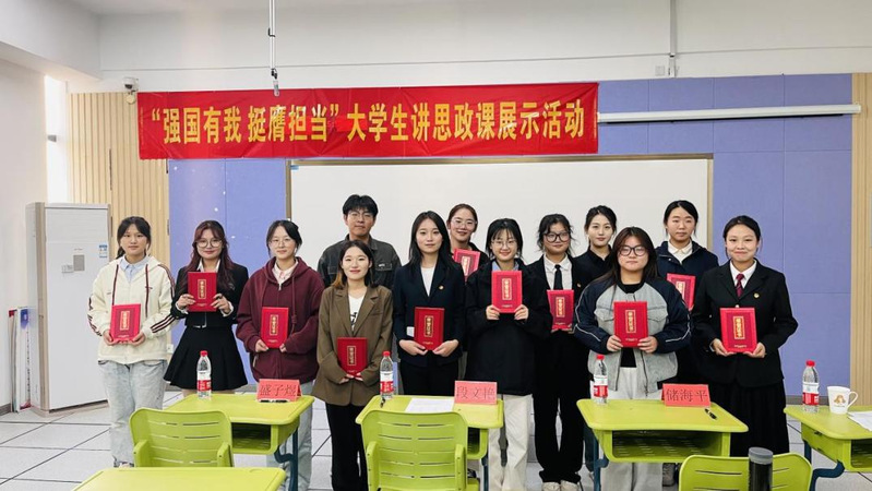 作为系列活动的重头戏,“大学生讲思政课”展示活动决赛于10月29日在敏行楼法治教育实训室隆重举行。同学们围绕“强国有我,挺膺担当”的主题,精心选取《思想道德与法治》《习近平新时代中国特色社会主义思想概论》等课程的相关内容,展开了一场别开生面的讲课比赛。