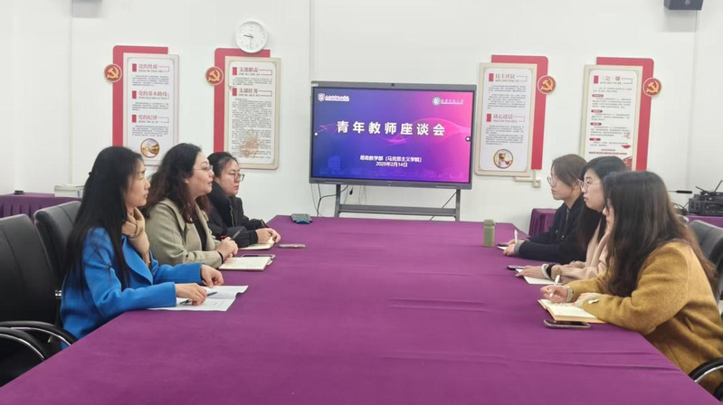 2月14日新学期伊始,yl9193永利集团在敏行楼303会议室组织召开了青年教师座谈会。本次座谈会由yl9193永利集团副院长王娜娜主持,三名“传帮带”指导老师王娜娜、许红梅、刘晨和三名青年教师张蓉、冷雅琳、王倩倩参会。