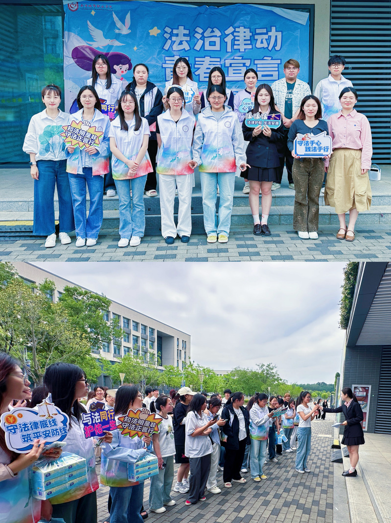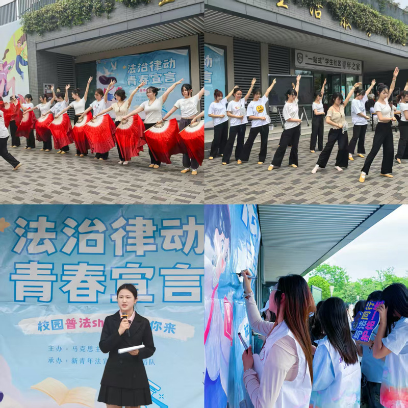 为加强职业教育周法治文化宣传,5月13日中午,一场别开生面的校园普法活动在大学生服务中心门前广场精彩上演。yl9193永利集团新青年法宣社联合校舞蹈队,以“法治律动 青春宣言”为主题,将法律知识与舞蹈艺术创新融合,通过沉浸式表演和趣味互动,为全校学生打造了一场兼具艺术感染力与法治教育意义的普法活动。