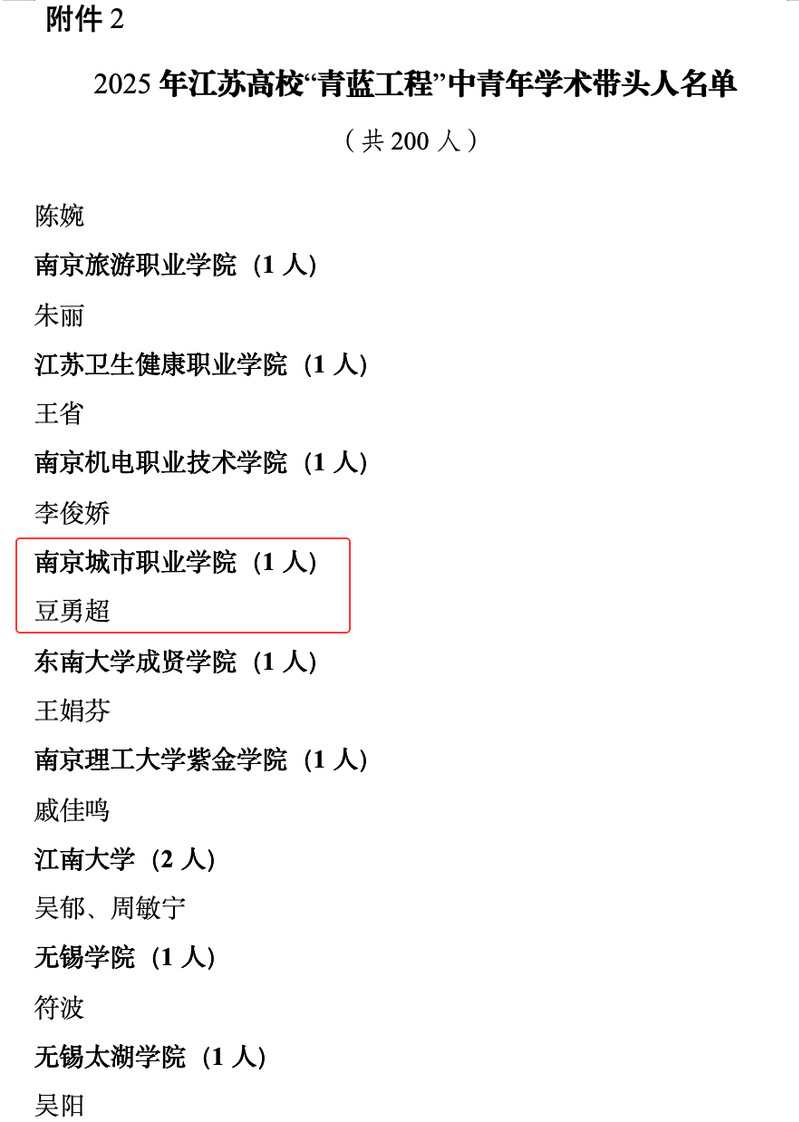 高校“青蓝工程”是江苏省教育厅为实施科教兴省和人才强省战略,进一步加强师资队伍建设,培养骨干教师和学科带头人,突出抓好高校优秀拔尖人才、学术带头人选拔培养工作而实施的重要人才培养工程。此次成绩的取得,是学院高度重视师资队伍建设的成果,也是广大思政教师共同努力的展现。今后,学院将进一步加强队伍建设和人才培养,为学校事业高质量发展作贡献。