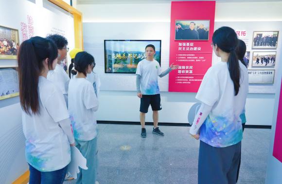 “大事小事,樟树下议。”实践首站走进余杭小古城村,队员们走进村民家中,跟着参与农活时听村民聊村务、议发展,感受“樟树下议事”等民主治理模式。通过村党委副书记讲解和村史展览馆学习,队员们理解了基层民主从“干部拍板”到“村民参与”的转变,体会到全过程人民民主是乡村振兴的坚实根基。