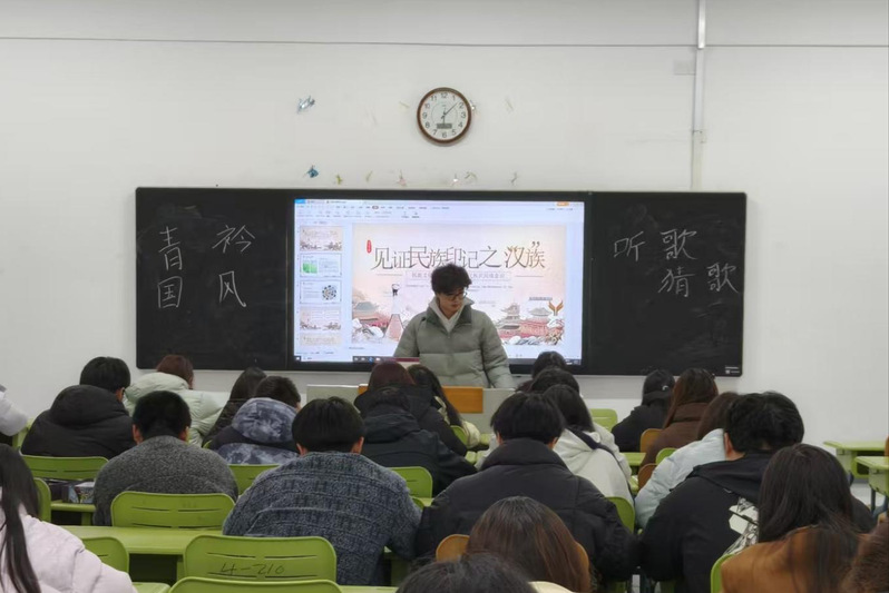 活动伊始,副社长郭浩辕围绕汉族文化的发展脉络,从历史起源、服饰美学、音乐韵律、传统习俗四个方面进行详细介绍。通过学习,社员们深刻体会到汉族文化以汉字为载体、以儒家思想为内核、以风土民俗为底蕴的独特魅力。随后,活动进入经典诵读环节,大家齐声诵读《论语》《诗经》中的经典篇目,琅琅书声中,传统文化的深厚韵味浸润人心。最后的趣味问答环节,社员们踊跃抢答、相互交流,在欢声笑语中进一步加深了对铸牢中华民族共同体意识的理解。